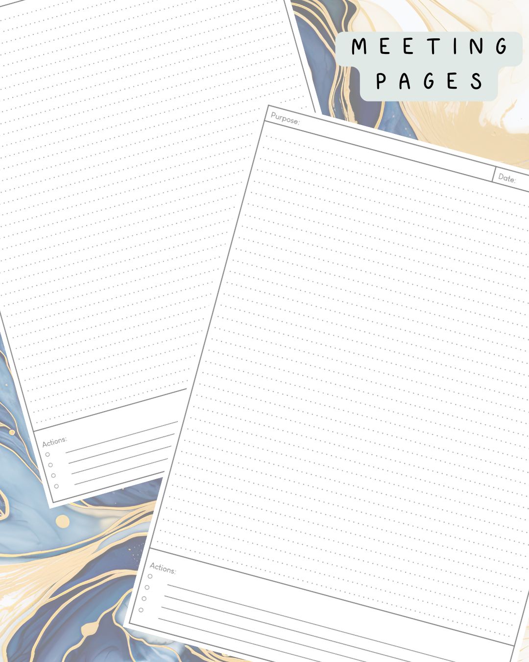Space for you make notes, doodle and highlight the action points from your meetings. The beauty of a discbound planner is that you can pull this page out when you write your next to do list to make sure you don’t forget any of those all important actions and then simply pop it back in to the meetings section once you’ve written your list!