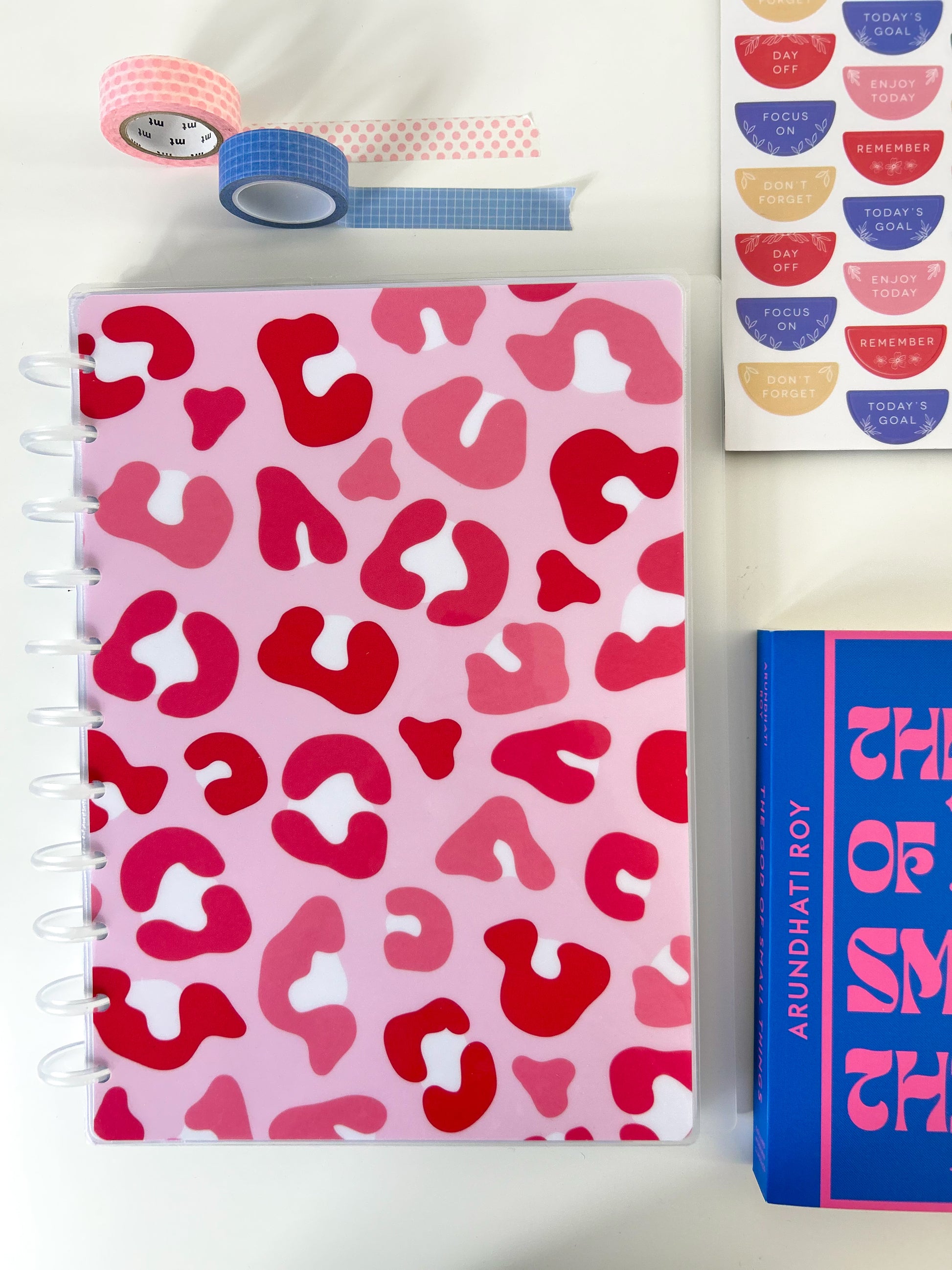The planner comes with a thick plastic frosted cover as standard that make it extra durable and ensures the cover does not budge! Underneath the cover for extra durability it the professional grade laminate that will keep your beautiful design looking bright and fresh, the paper is thick, smooth 120gsm and the whole thing is bound together with frosted plastic discs that match every single design!